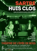 C’est en mai 1944 que fut donnée la première représentation de Huis clos (titre initial : Les Autres) au théâtre du Vieux Colombier dans une période encore confuse malgré l’espoir de la Libération imminente. Alors que dans Les Mouches, monté en 1943, Sartre traitait peu ou prou de questions politiques à travers un sujet antique (entendant ainsi tourner la censure), tel n’était plus ici le cas. Il abordait un thème existentiel, intemporel et universel, celui de l’humaine condition vouée à la mortalité, imaginant par provocation un trio de morts récents projeté en « Enfer ». A propos de Huis clos, de Jean-Paul Sartre, mise en scène Jean-Louis Benoît, Vu à l’Epée de bois)